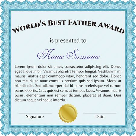 World's Best Father Award. Border, frame.Beauty design. With linear background.