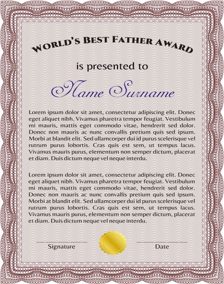 World's Best Father Award Template. Border, frame.Artistry design. Easy to print.