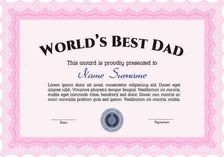 World's Best Father Award Template. Excellent design. Complex background. Customizable, Easy to edit and change colors.