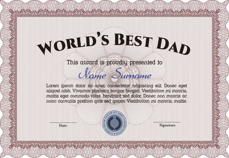 World's Best Father Award Template. With guilloche pattern. Complex design. Border, frame.