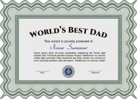 World's Best Father Award Template. With guilloche pattern. Detailed.Lovely design.