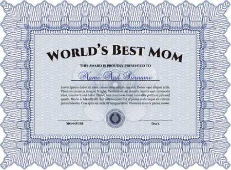 World's Best Mom Award. Detailed. Printer friendly. Complex design.