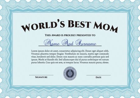World's Best Mom Award. Excellent design. Easy to print. Border, frame.