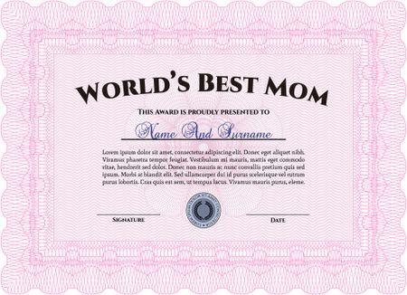 World's Best Mom Award. Printer friendly. Complex design. Detailed.