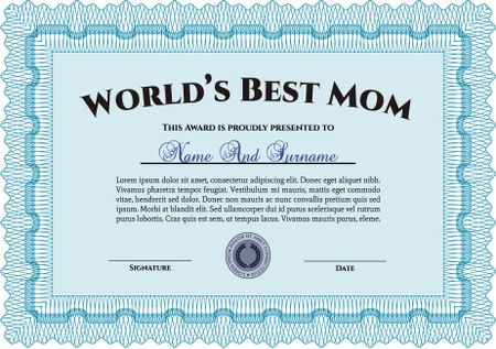World's Best Mom Award Template. Border, frame.With great quality guilloche pattern. Superior design.