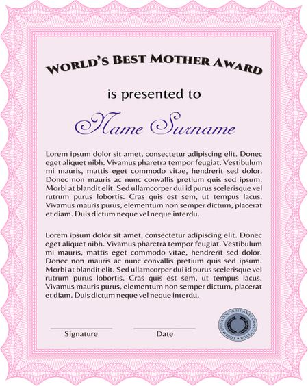World's Best Mother Award. Detailed. Cordial design. With background.