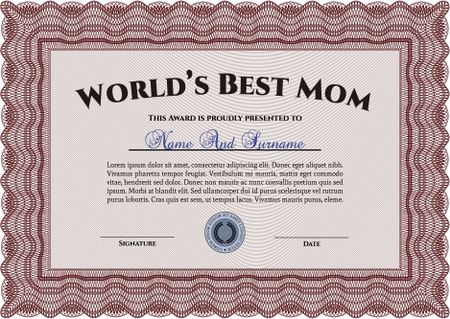 World's Best Mother Award. Easy to print. Detailed. Cordial design.