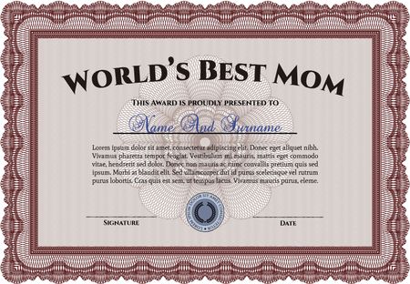 World's Best Mother Award. Excellent complex design. With background. Detailed.
