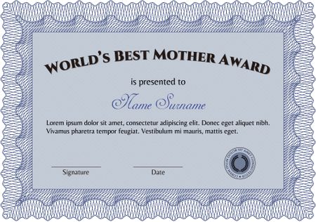 World's best mother award template (blue color)