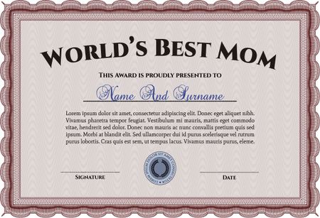 World's Best Mother Award Template. Complex background. Lovely design. Customizable, Easy to edit and change colors.
