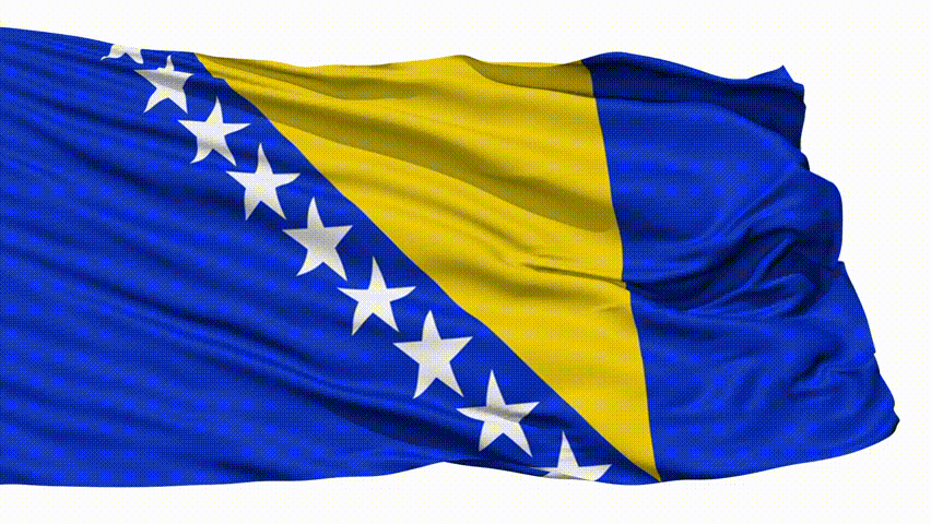 Animation of the full fluttering national flag of Bosnia and Herzegovina isolated on white