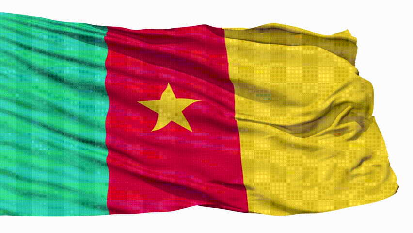 Animation of the full fluttering national flag of Cameroon isolated on white