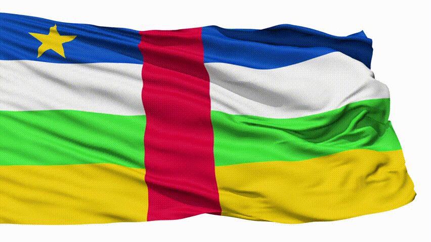 Animation of the full fluttering national flag of Central Africa isolated on white