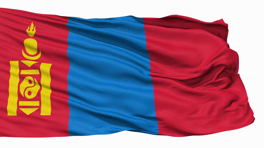 Animation of the full fluttering national flag of Mongolia isolated on white