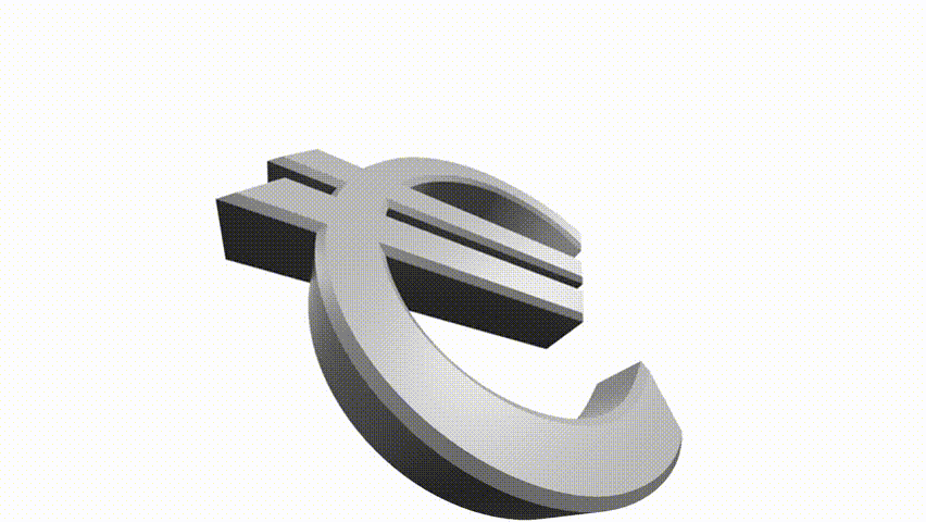 A cement Euro crumbling into pieces from the top, conceptual illustration of the fall of the Euro.