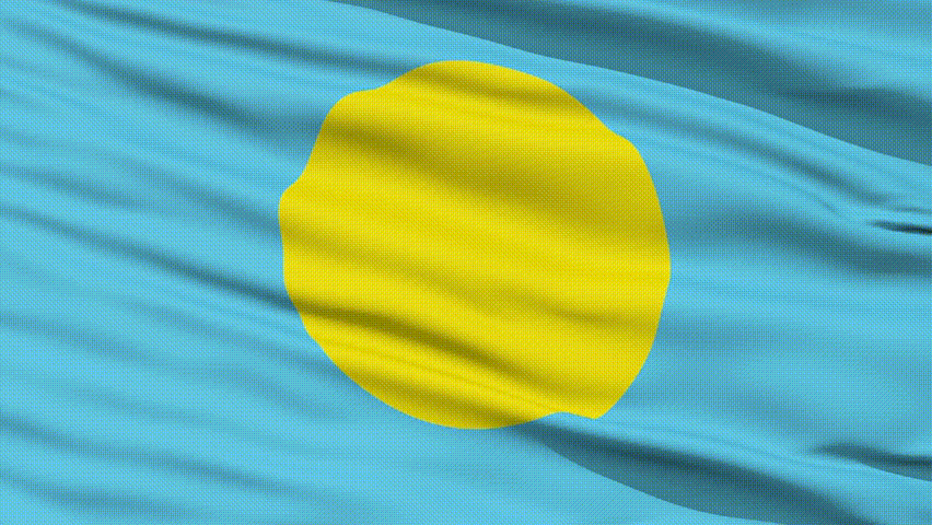 Closeup cropped view of a fluttering national flag of Palau