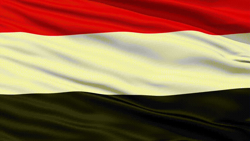 Closeup cropped view of a fluttering national flag of Yemen