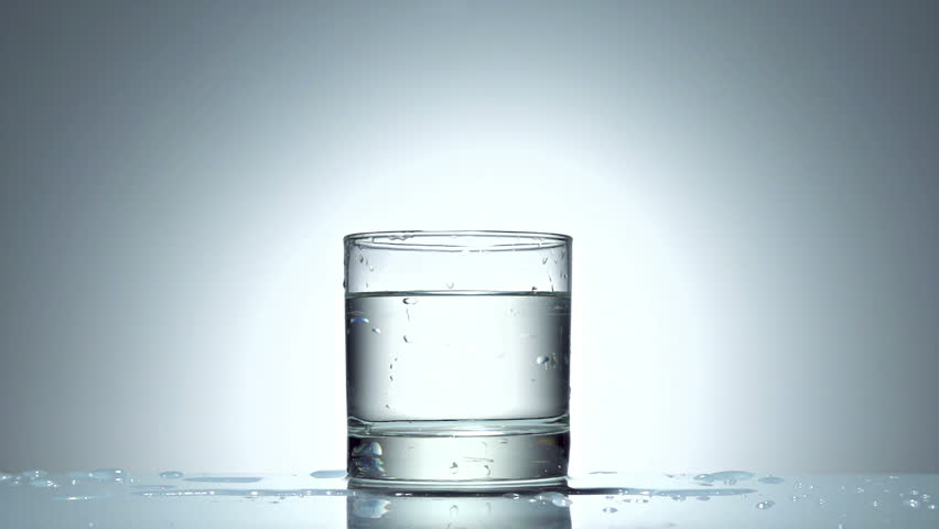 ice cube splash in glass of water on white, slow motion 250fps fullHD video
