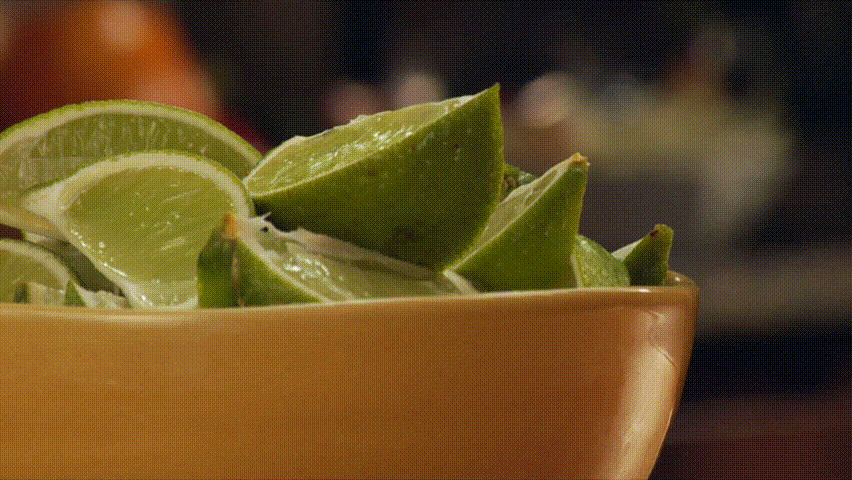 lock down of sliced limes, movement in background