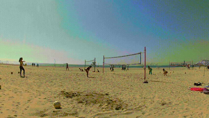 LONG BEACH, CA - February 23, 2013: A wide shot of young women playing volleyball at the beach circa 2013 in Long Beach.