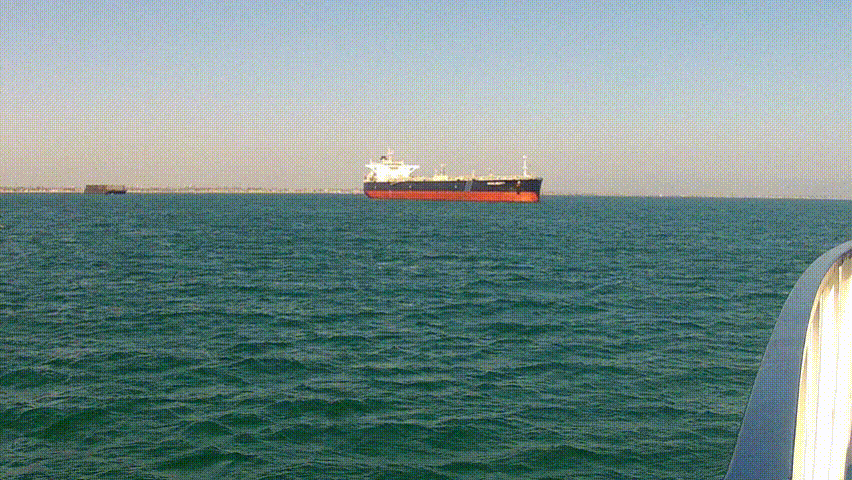 LONG BEACH, CA: May 20, 2013- A long shot of a petrochemical ship or tanker anchored in Long Beach CA Harbor circa 2013 in Long Beach.