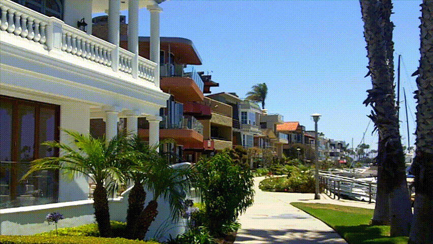 LONG BEACH, CA/USA- August 12, 2012: A row of beach houses in the Naples Island district evokes prosperity circa 2012 in Long Beach CA. Naples Island is a favorite shooting location for Hollywood.