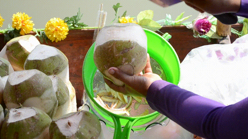 peeling coconut with edge knife of thailand market