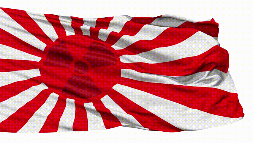 Realistic 3D detailed slow motion japan radiation flag in the wind - seamless looping (isolated on white background)