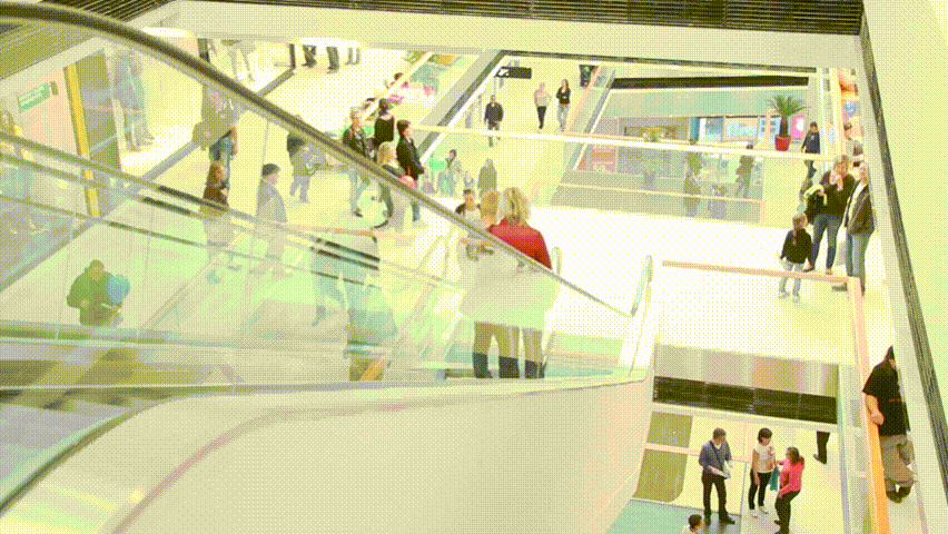 Slightly defocused crowd of walking people in the newly opened shopping mall center