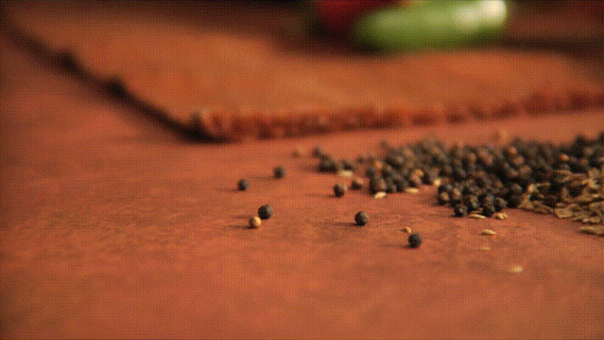slow pan over peppers and a mountain of mexican spices