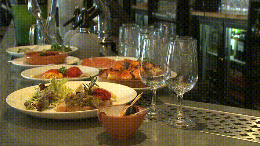 Tapas bar, sherry pouring. HD