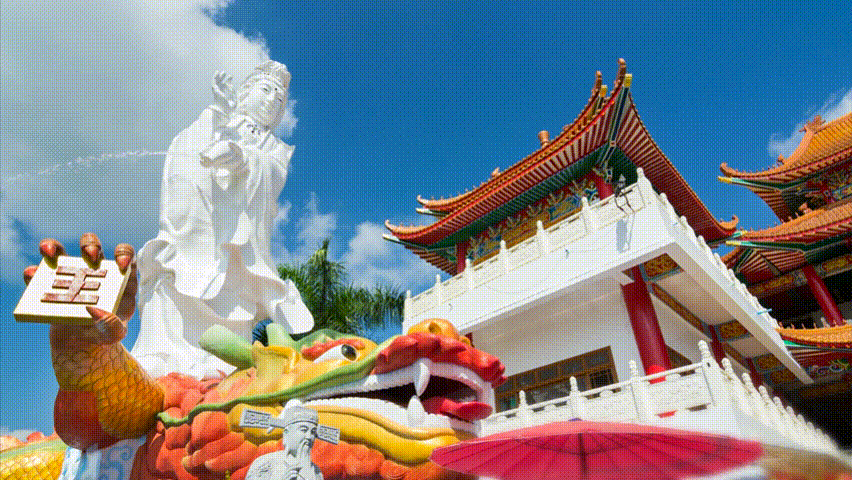 Time Lapse Guan Yin Statue On Big Dragon Statue In China Temple