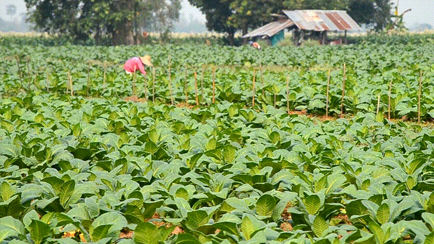 tobacco plant and farmer working in country farm