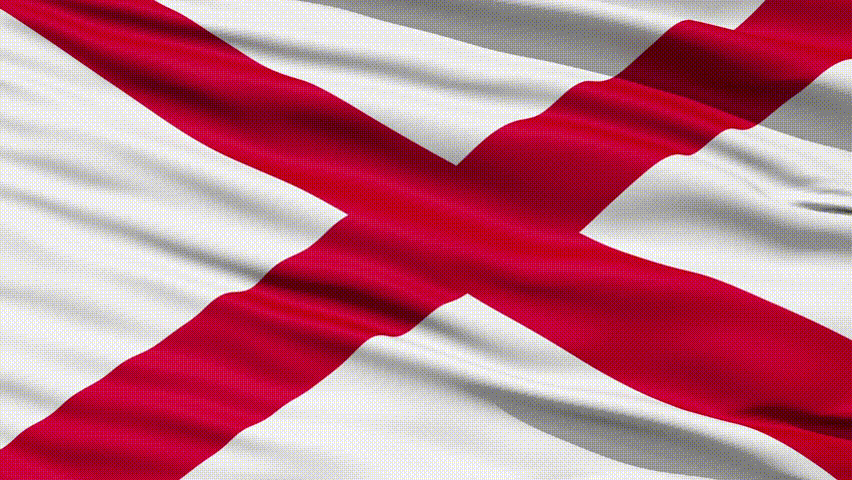Waving Flag of The US State Of Alabama with the crimson cross of St Andrew.