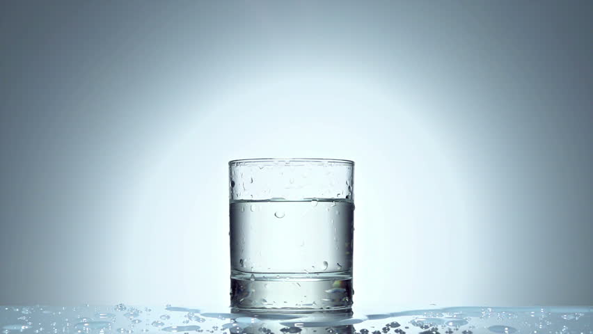 ice cube splash in glass of water on white, slow motion 250fps fullHD video