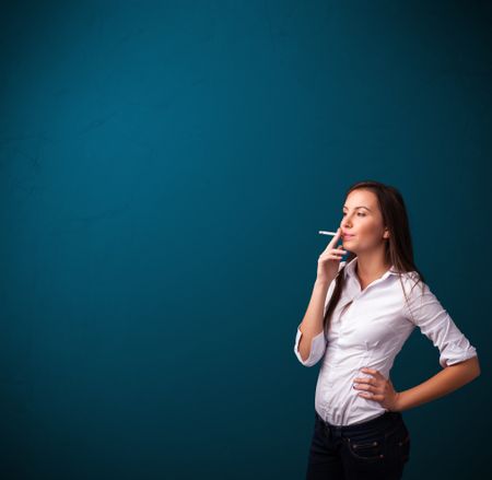Beautiful young woman smoking cigarette with copy spaceImage used under license from Freestock.com<a href="https://www.freestock.com/free-photos/beautiful-young-woman-smoking-cigarette-copy-160159865">Image used under license from Freestock.com</a>