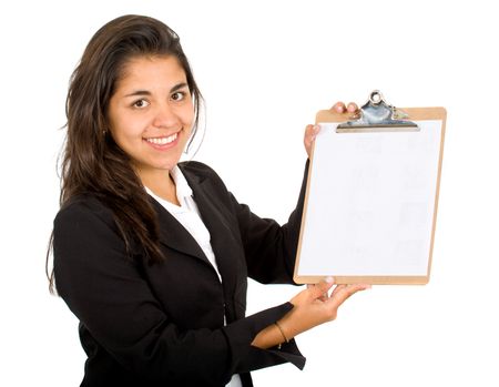 <a href="https://www.freestock.com/free-photos/friendly-business-woman-placard-isolated-white-153616460">Image used under license from Freestock.com</a>