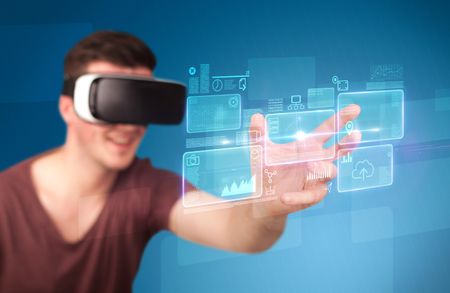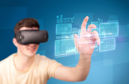 Young impressed man wearing virtual reality goggles with blue squares containing data at his fingers Image used under license from Freestock.com<a href="https://www.freestock.com/free-photos/young-impressed-man-wearing-virtual-reality-1007391451">Image used under license from Freestock.com</a>