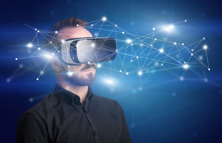 Young businessman in virtual reality glasses organize online network communicationImage used under license from Freestock.com<a href="https://www.freestock.com/free-photos/young-businessman-virtual-reality-glasses-organize-1388677244">Image used under license from Freestock.com</a>